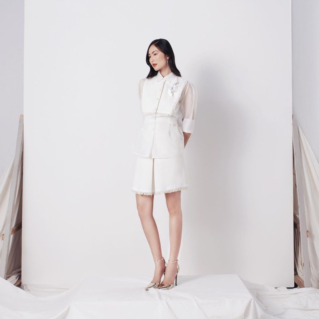 ORGANZA ON TWEED TOP X TWEED SKIRT X FLOWER SIGNATURE