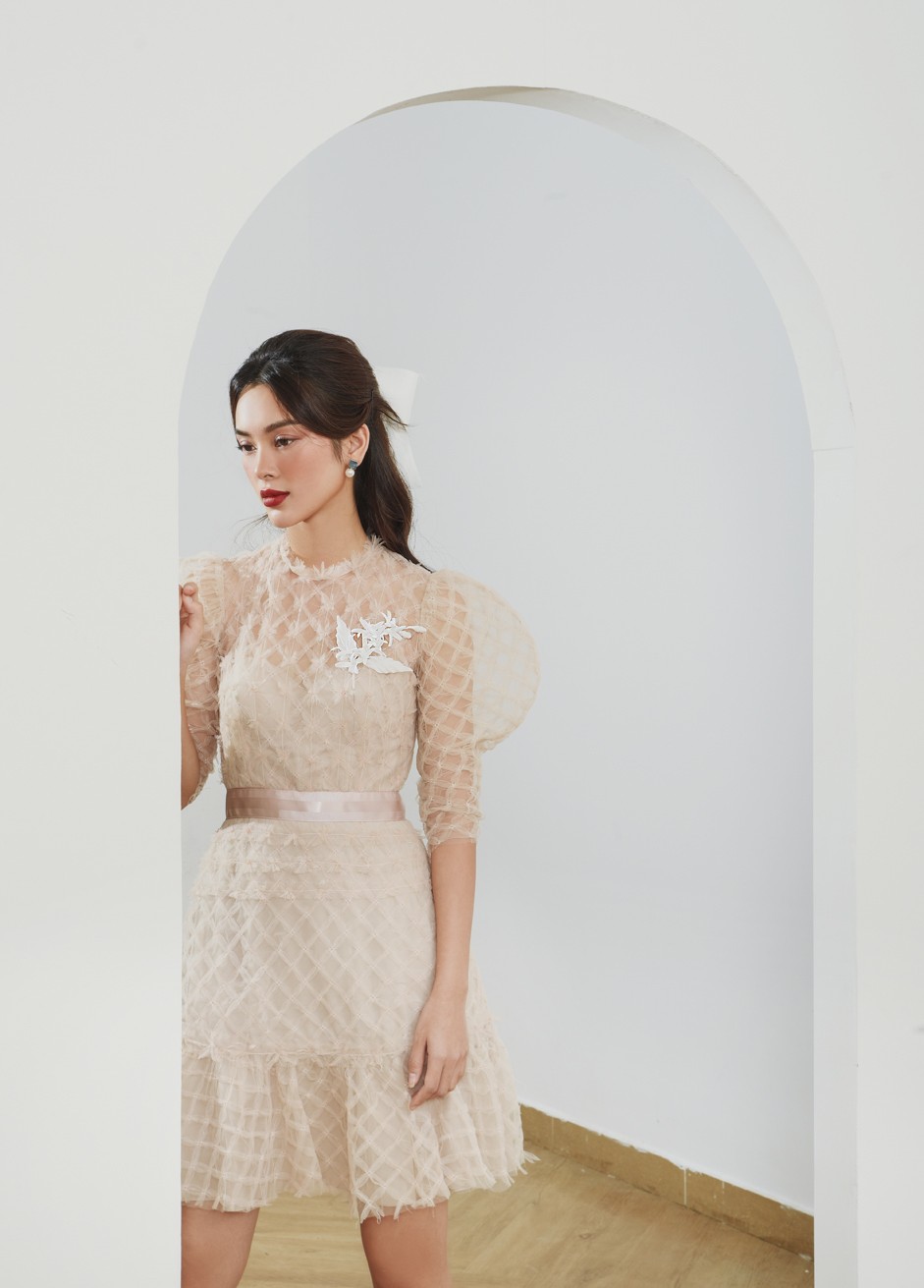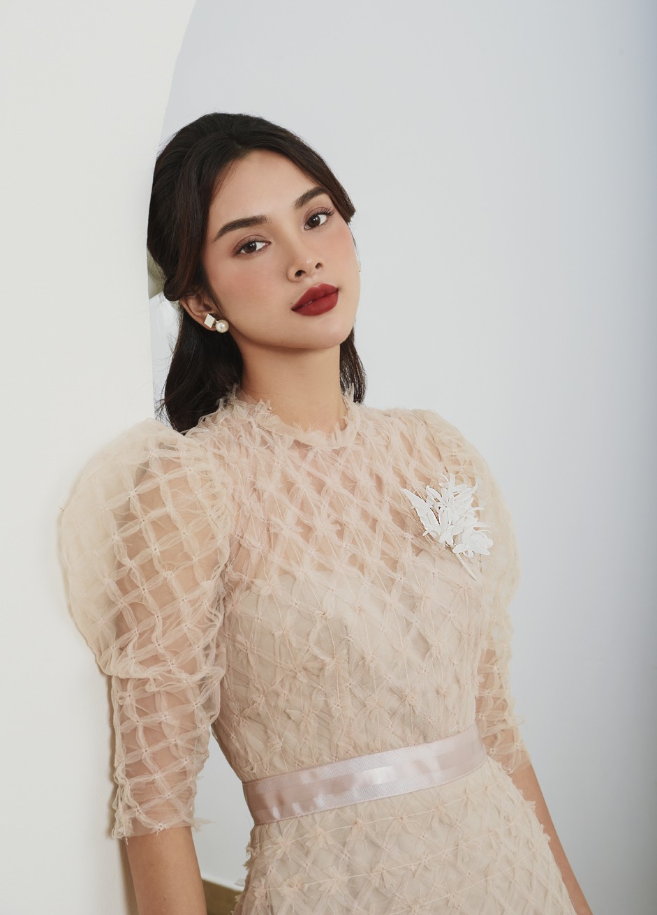 Vải Ren Dệt Sợi Đan Ô Bàn Cờ, Đầm Có Qua Xử Lý Chạy Ren Tạo Hiệu Ứng Và Nhấn Bản Thắt Lưng Ruy Băng. Sản Phẩm Được Tặng Kèm Hoa Cài Signature (Nếu Không Lấy Hoa Cũng Không Được Giảm Giá)